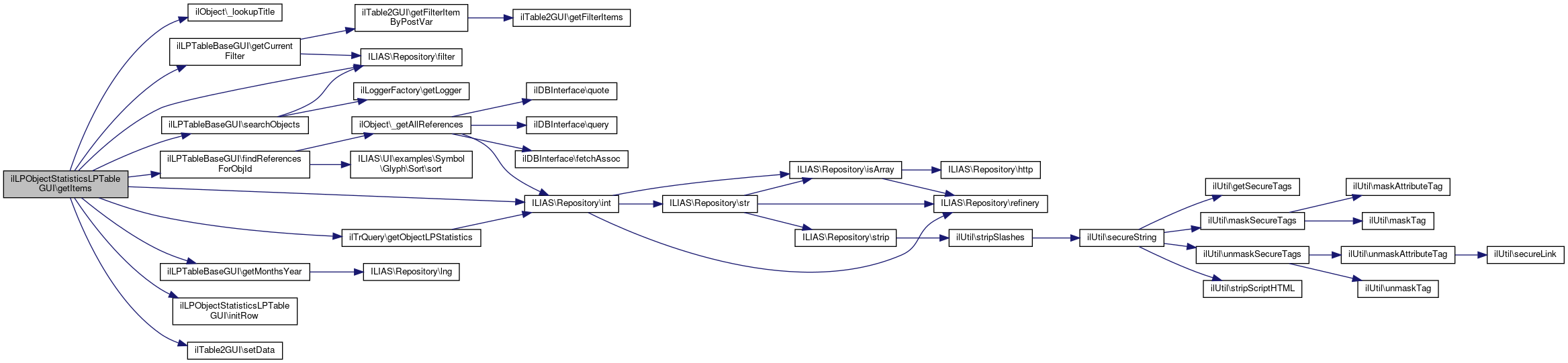 Here is the call graph for this function:| ilLPObjectStatisticsLPTableGUI::getItems | ( | ) |