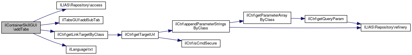 Here is the call graph for this function:| ilContainerSkillGUI::addTabs | ( | ) |