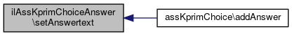 Here is the call graph for this function:| ilAssKprimChoiceAnswer::setAnswertext | ( | $answertext | ) |