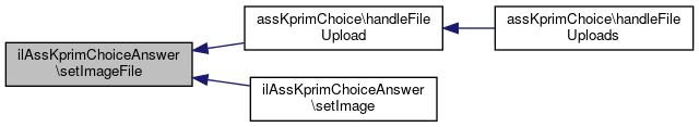 Here is the call graph for this function:| ilAssKprimChoiceAnswer::setImageFile | ( | ?string | $imageFile | ) |