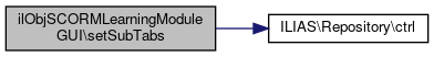 Here is the call graph for this function:| ilObjSCORMLearningModuleGUI::setSubTabs | ( | ) |