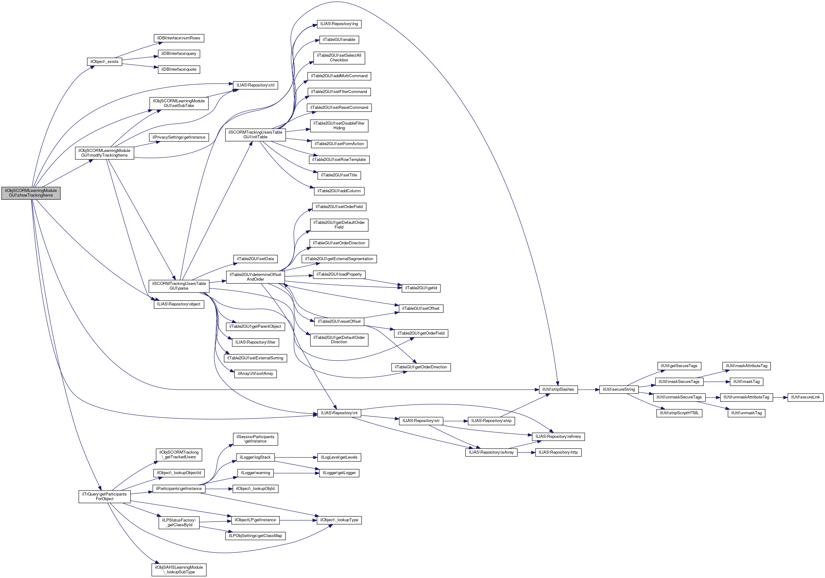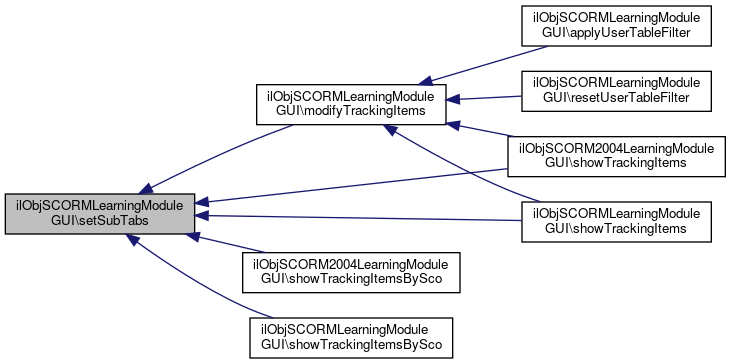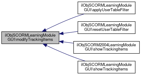 Referenced by modifyTrackingItems(), ilObjSCORM2004LearningModuleGUI\showTrackingItems(), showTrackingItems(), ilObjSCORM2004LearningModuleGUI\showTrackingItemsBySco(), and showTrackingItemsBySco().