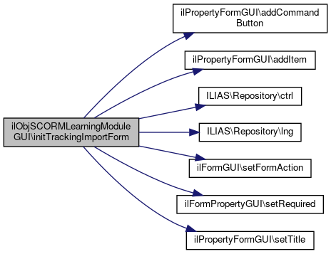 Here is the call graph for this function:| ilObjSCORMLearningModuleGUI::initPropertiesForm | ( | ) |