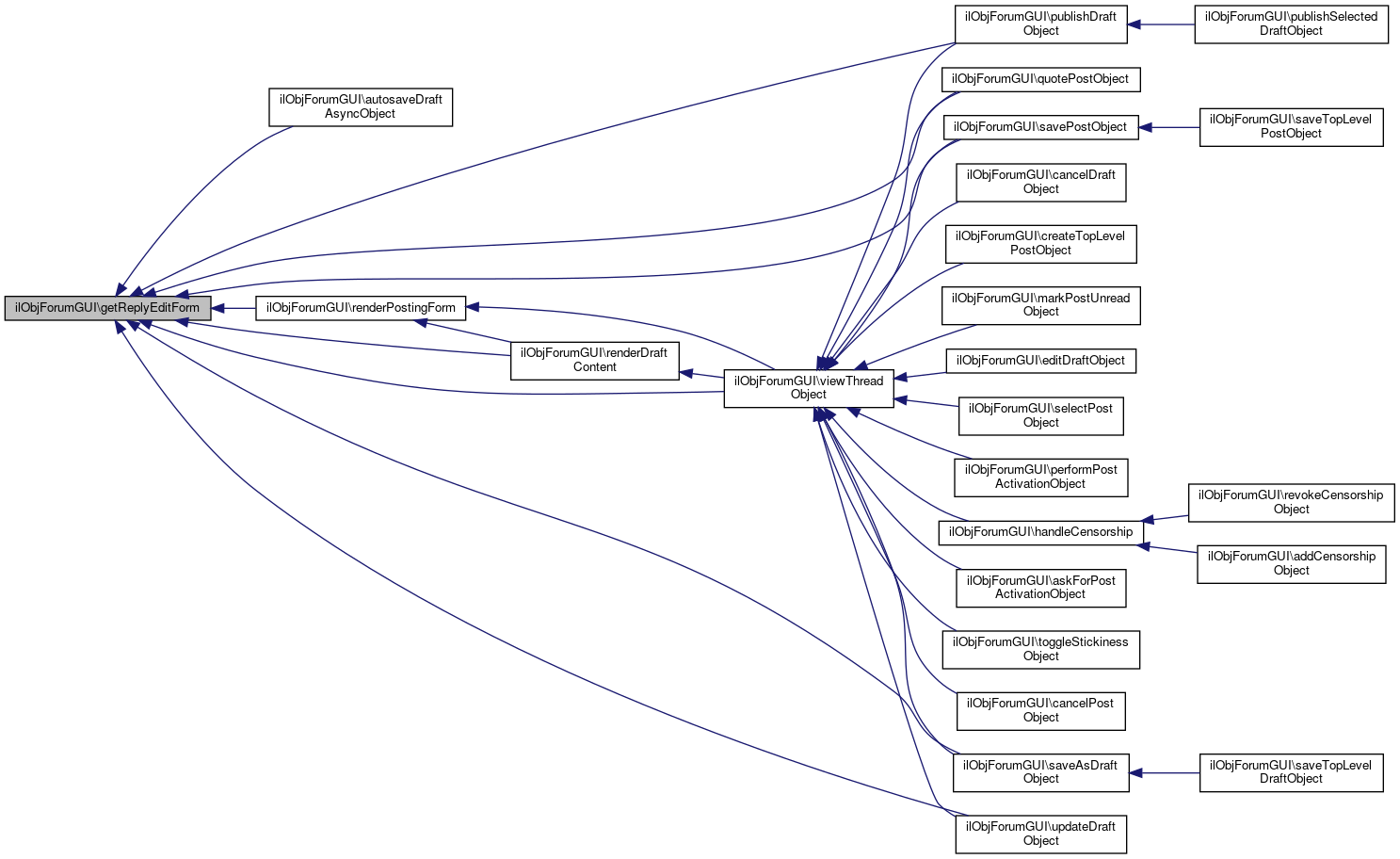 References $is_moderator, $objCurrentTopic, $post, $selectedSorting, ilObjectGUI\$toolbar, ilObjMediaObject\_exists(), ilObjMediaObject\_getMobsOfObject(), ilChangeEvent\_recordReadEvent(), ilObjMediaObject\_removeUsage(), ILIAS\Repository\access(), ilObjectGUI\addHeaderAction(), ilNavigationHistory\addItem(), ILIAS\Repository\ctrl(), ilFileDataForumDrafts\deliverFile(), ensureThreadBelongsToForum(), ensureValidPageForCurrentPosting(), ForumGlobalScreenToolsProvider\FORUM_BASE_CONTROLLER, ForumGlobalScreenToolsProvider\FORUM_THEAD, ForumGlobalScreenToolsProvider\FORUM_THREAD_ROOT, ilSession\get(), ilObjectGUI\getCreationMode(), ilForum\getForumId(), getForumObjects(), ilForumPost\getId(), getModalActions(), getOrderByParam(), ilForum\getPageHits(), getReplyEditForm(), getResetLimitedViewInfo(), ilForumPostDraft\getSortedDrafts(), ILIAS\Repository\globalScreen(), ILIAS\Repository\int(), ilForumPostDraft\isSavePostDraftAllowed(), isTopLevelReplyCommand(), ILIAS\Repository\lng(), ILIAS\Repository\locator(), ILIAS\Repository\object(), ForumGlobalScreenToolsProvider\PAGE, ForumGlobalScreenToolsProvider\REF_ID, renderDraftContent(), renderPostContent(), renderPostingForm(), renderSortationControl(), renderViewModeControl(), ilSession\set(), ilForum\setMDB2WhereCondition(), ILIAS\Repository\settings(), ForumGlobalScreenToolsProvider\SHOW_FORUM_THREADS_TOOL, ilUtil\stripSlashes(), ILIAS\Repository\user(), ilForumProperties\VIEW_DATE_ASC, ilForumProperties\VIEW_DATE_DESC, and ilForumProperties\VIEW_TREE.