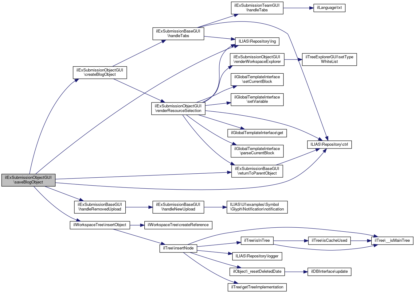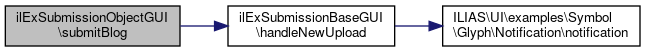Here is the call graph for this function:| ilExSubmissionObjectGUI::submitBlog | ( | int | $a_blog_id | ) |