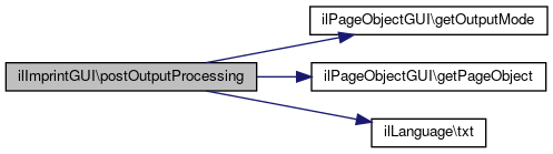Here is the call graph for this function:| ilImprintGUI::postOutputProcessing | ( | string | $a_output | ) |