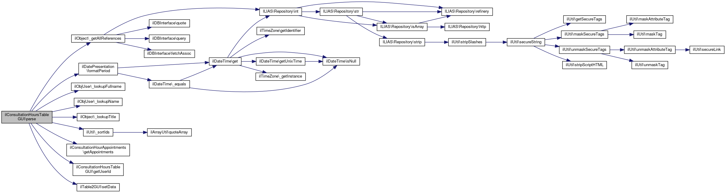 Here is the caller graph for this function:| ilConsultationHoursTableGUI::parse | ( | ) |