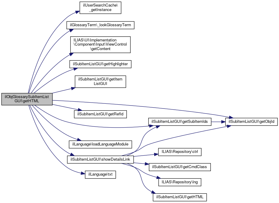 References ilSubItemListGUI\$lng, $user, ilUserSearchCache\_getInstance(), ilGlossaryTerm\_lookGlossaryTerm(), ILIAS\UI\Implementation\Component\Input\ViewControl\getContent(), ilSubItemListGUI\getHighlighter(), ilSubItemListGUI\getItemListGUI(), ilSubItemListGUI\getObjId(), ilSubItemListGUI\getRefId(), ilSubItemListGUI\getSubItemIds(), ilLanguage\loadLanguageModule(), ilSubItemListGUI\showDetailsLink(), and ilLanguage\txt().