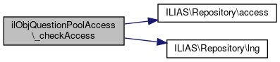 Here is the call graph for this function:| ilObjQuestionPoolAccess::_checkAccess | ( | string | $cmd, |