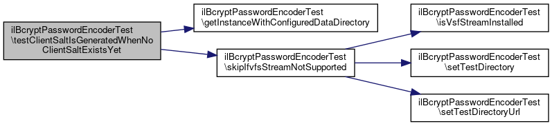 Here is the call graph for this function:| ilBcryptPasswordEncoderTest::testClientSaltIsGeneratedWhenNoClientSaltExistsYet | ( | ) |