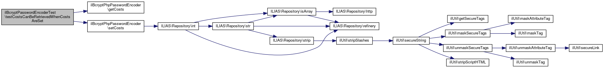 Here is the call graph for this function:| ilBcryptPasswordEncoderTest::testCostsCanBeRetrievedWhenCostsAreSet | ( | ilBcryptPasswordEncoder | $encoder | ) |