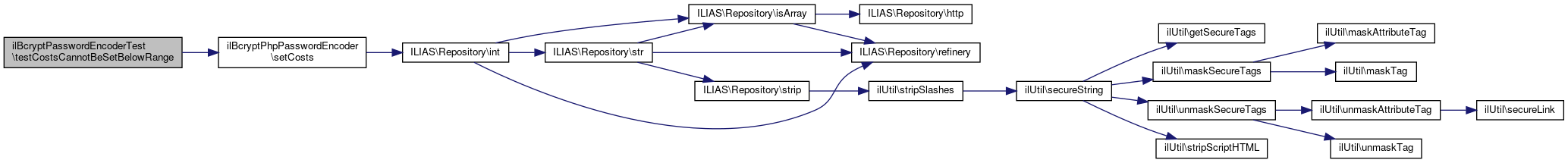 Here is the call graph for this function:| ilBcryptPasswordEncoderTest::testCostsCannotBeSetBelowRange | ( | ilBcryptPasswordEncoder | $encoder | ) |