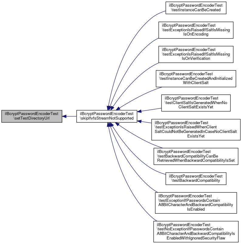 Here is the caller graph for this function:| ilBcryptPasswordEncoderTest::setTestDirectory | ( | vfs\vfsStreamDirectory | $testDirectory | ) |