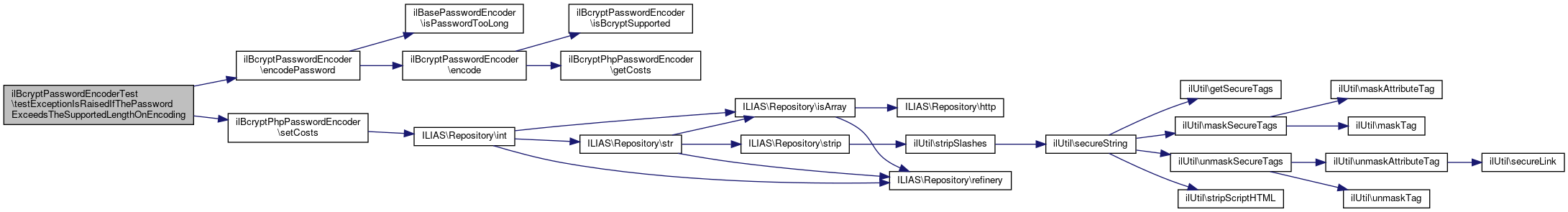 Here is the call graph for this function:| ilBcryptPasswordEncoderTest::testExceptionIsRaisedIfThePasswordExceedsTheSupportedLengthOnEncoding | ( | ilBcryptPasswordEncoder | $encoder | ) |