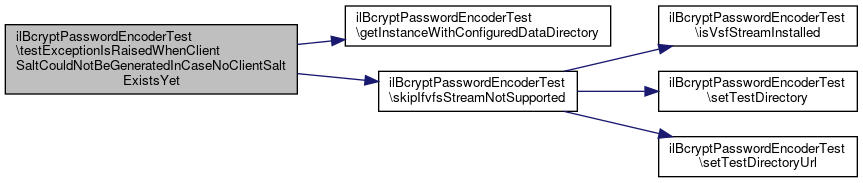 Here is the call graph for this function:| ilBcryptPasswordEncoderTest::testExceptionIsRaisedWhenClientSaltCouldNotBeGeneratedInCaseNoClientSaltExistsYet | ( | ) |