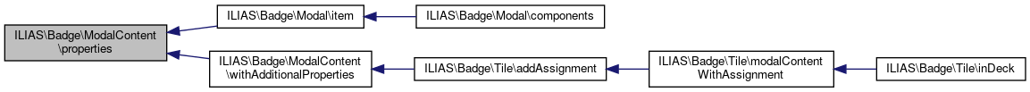 Here is the caller graph for this function:| ILIAS\Badge\ModalContent::properties | ( | ) |
