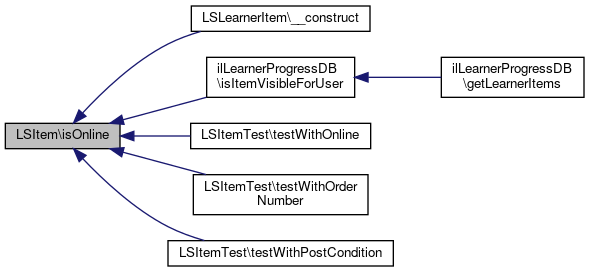 Referenced by LSLearnerItem\__construct(), ilLearnerProgressDB\isItemVisibleForUser(), LSItemTest\testWithOnline(), LSItemTest\testWithOrderNumber(), and LSItemTest\testWithPostCondition().