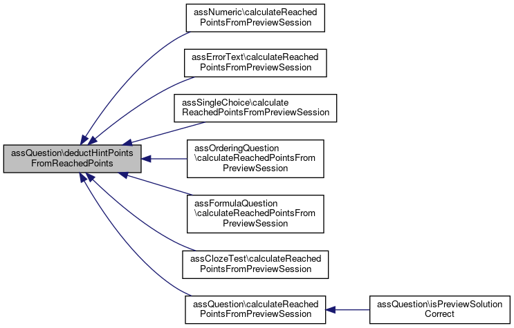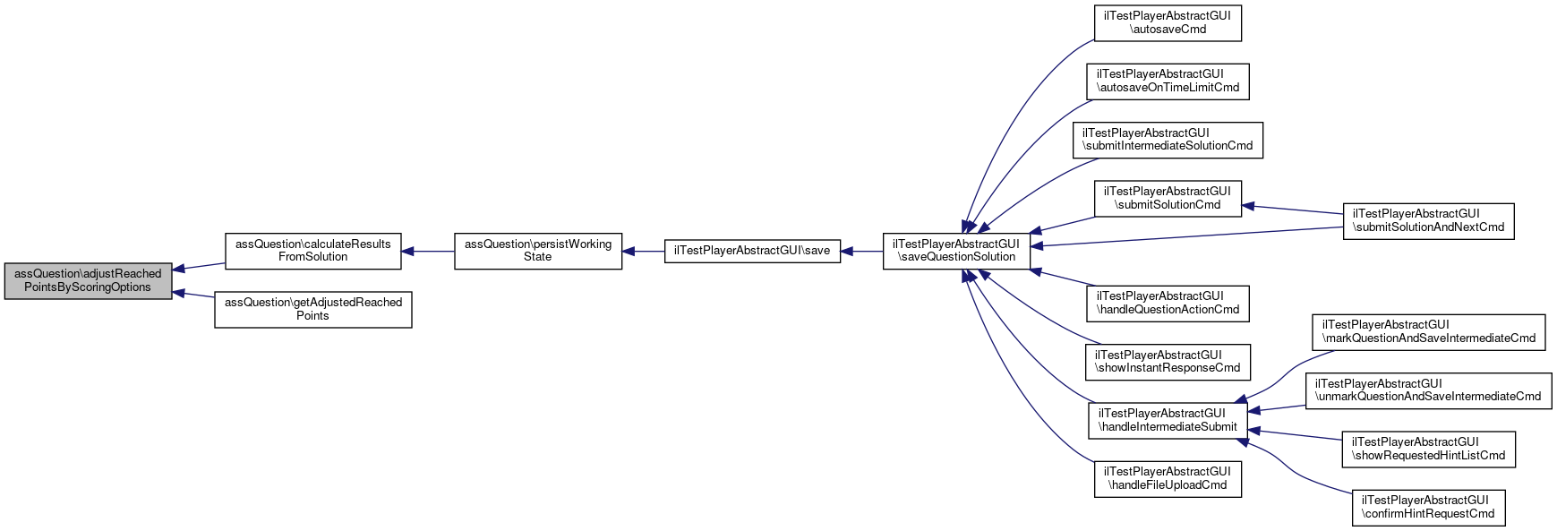 Referenced by _getReachedPoints(), assTextSubset\addAnswer(), assSingleChoice\addAnswer(), assMultipleChoice\addAnswer(), assTextQuestion\addAnswer(), assMatchingQuestion\addMatchingPair(), adjustReachedPointsByScoringOptions(), assClozeTest\calculateCombinationResult(), assOrderingHorizontal\calculateReachedPoints(), assNumeric\calculateReachedPoints(), assErrorText\calculateReachedPoints(), assSingleChoice\calculateReachedPoints(), assKprimChoice\calculateReachedPoints(), assMatchingQuestion\calculateReachedPoints(), assFormulaQuestion\calculateReachedPoints(), assTextQuestion\calculateReachedPointsForSolution(), assLongMenu\calculateReachedPointsForSolution(), assOrderingHorizontal\calculateReachedPointsForSolution(), assTextSubset\calculateReachedPointsForSolution(), assKprimChoice\calculateReachedPointsForSolution(), assMultipleChoice\calculateReachedPointsForSolution(), assMatchingQuestion\calculateReachedPointsForSolution(), assClozeTest\calculateReachedPointsForSolution(), assNumeric\calculateReachedPointsFromPreviewSession(), assSingleChoice\calculateReachedPointsFromPreviewSession(), assFormulaQuestion\calculateReachedPointsFromPreviewSession(), assLongMenu\checkQuestionCustomPart(), assMatchingQuestion\createMatchingPair(), ensureNonNegativePoints(), assClozeTest\getMaximumGapPoints(), assTextQuestion\getMaximumPoints(), assTextSubset\getMaximumPoints(), assLongMenu\getMaximumPoints(), assSingleChoice\getMaximumPoints(), getMaximumPoints(), assMatchingQuestion\getMaximumPoints(), assClozeTest\getMaximumPoints(), assFormulaQuestion\getMaximumPoints(), assTextQuestion\getMinimumPoints(), getPoints(), assLongMenu\getPointsForGap(), assErrorText\getPointsForSelectedPositions(), assNumeric\getUserQuestionResult(), assOrderingHorizontal\getUserQuestionResult(), assTextSubset\getUserQuestionResult(), assLongMenu\getUserQuestionResult(), assErrorText\getUserQuestionResult(), assSingleChoice\getUserQuestionResult(), assMultipleChoice\getUserQuestionResult(), assOrderingQuestion\getUserQuestionResult(), assFormulaQuestion\getUserQuestionResult(), assMatchingQuestion\getUserQuestionResult(), assClozeTest\getUserQuestionResult(), assMatchingQuestion\insertMatchingPair(), assLongMenu\saveAnswerSpecificDataToDb(), assTextQuestion\setAnswers(), assErrorText\setErrorsFromParsedErrorText(), assClozeTest\setGapAnswerPoints(), and setPoints().