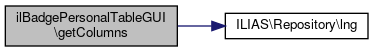 References getActions(), getColumns(), ILIAS\Repository\lng(), and ILIAS\Repository\user().