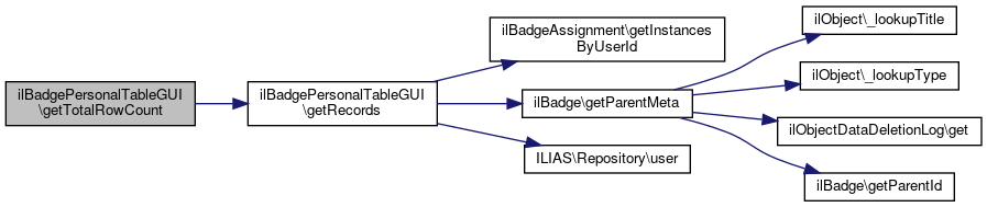 Here is the call graph for this function:| ilBadgePersonalTableGUI::getTotalRowCount | ( | ?array | $filter_data, |