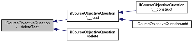 Here is the caller graph for this function:| ilCourseObjectiveQuestion::__deleteTest | ( | int | $a_test_ref_id | ) |