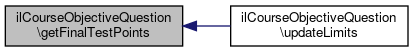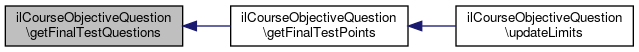 Here is the caller graph for this function:| ilCourseObjectiveQuestion::getFinalTestPoints | ( | ) |