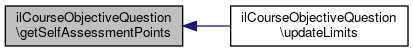 Here is the call graph for this function:| ilCourseObjectiveQuestion::getSelfAssessmentPoints | ( | ) |