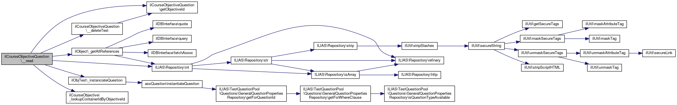 Here is the caller graph for this function:| ilCourseObjectiveQuestion::__read | ( | ) |