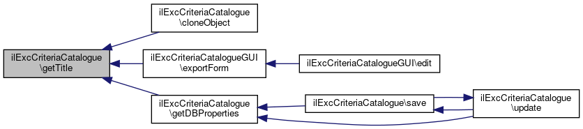 Here is the caller graph for this function:| ilExcCriteriaCatalogue::getTitle | ( | ) |