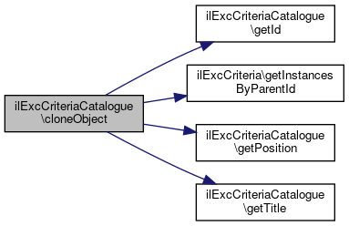 Here is the call graph for this function:| ilExcCriteriaCatalogue::cloneObject | ( | int | $a_target_parent_id | ) |