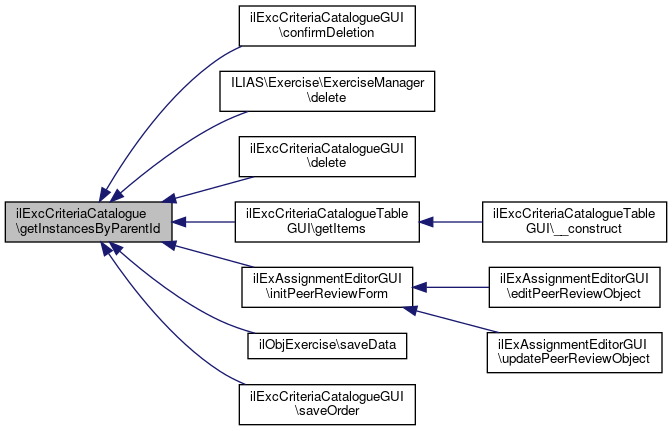 Referenced by ilExcCriteriaCatalogueGUI\confirmDeletion(), ILIAS\Exercise\ExerciseManager\delete(), ilExcCriteriaCatalogueGUI\delete(), ilExcCriteriaCatalogueTableGUI\getItems(), ilExAssignmentEditorGUI\initPeerReviewForm(), ilObjExercise\saveData(), and ilExcCriteriaCatalogueGUI\saveOrder().