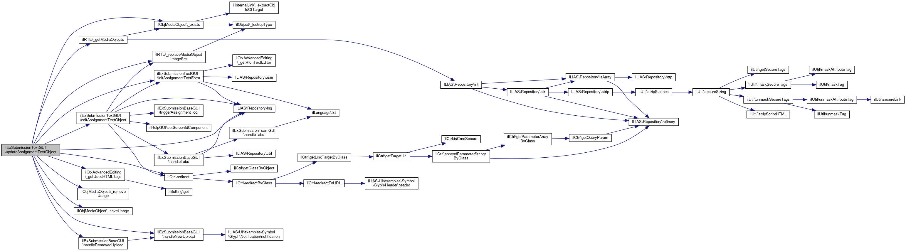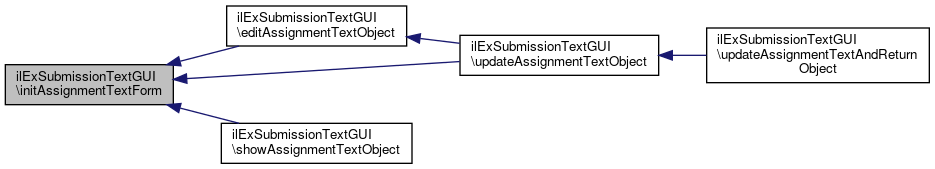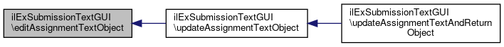 Here is the call graph for this function:| ilExSubmissionTextGUI::updateAssignmentTextObject | ( | bool | $a_return = false | ) |