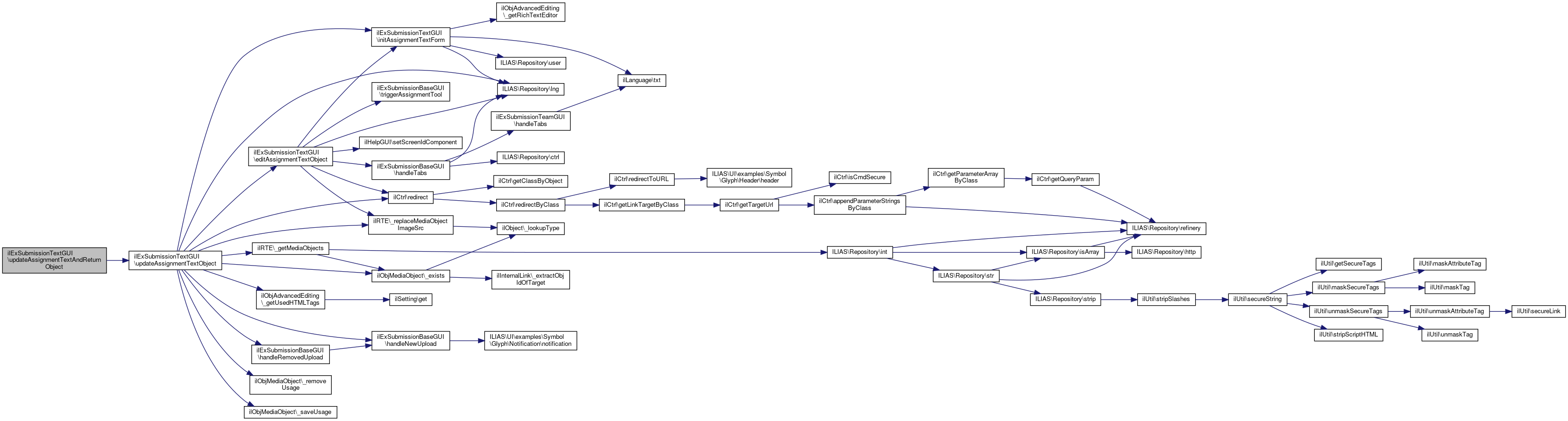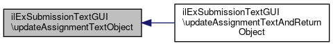 Here is the call graph for this function:| ilExSubmissionTextGUI::updateAssignmentTextAndReturnObject | ( | ) |