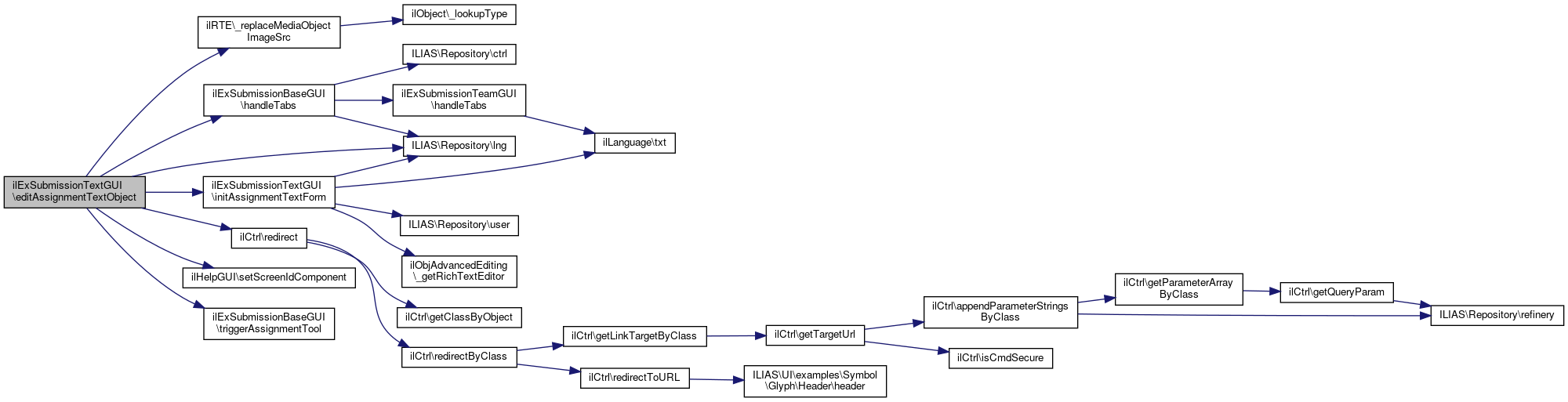 References ilExSubmissionBaseGUI\$ctrl, $help, $text, ilRTE\_replaceMediaObjectImageSrc(), ilExSubmissionBaseGUI\handleTabs(), initAssignmentTextForm(), ILIAS\Repository\lng(), ilCtrl\redirect(), ilHelpGUI\setScreenIdComponent(), and ilExSubmissionBaseGUI\triggerAssignmentTool().