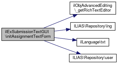 Here is the call graph for this function:| ilExSubmissionTextGUI::editAssignmentTextObject | ( | ilPropertyFormGUI | $a_form = null | ) |
