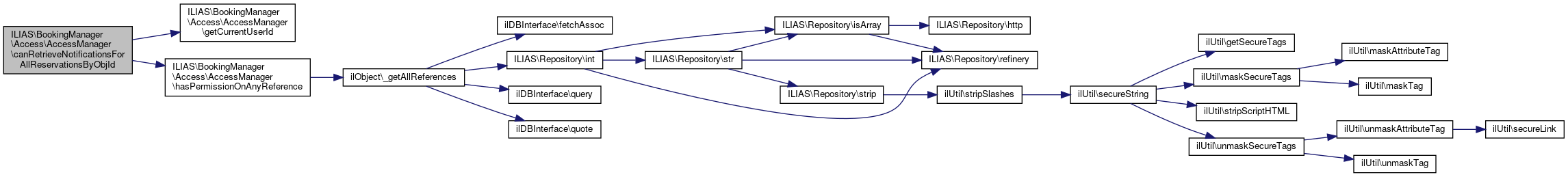 Here is the call graph for this function:| ILIAS\BookingManager\Access\AccessManager::canRetrieveNotificationsForAllReservationsByObjId | ( | int | $book_obj_id, |