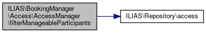 Here is the call graph for this function:| ILIAS\BookingManager\Access\AccessManager::filterManageableParticipants | ( | int | $ref_id, |
