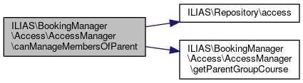 Here is the call graph for this function:| ILIAS\BookingManager\Access\AccessManager::canManageMembersOfParent | ( | int | $ref_id | ) |