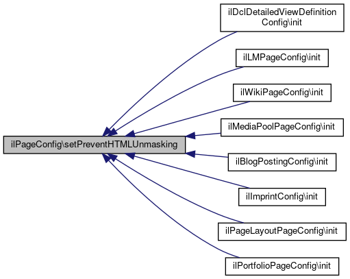 Here is the caller graph for this function:| ilPageConfig::setPreventHTMLUnmasking | ( | bool | $a_preventhtmlunmasking | ) |