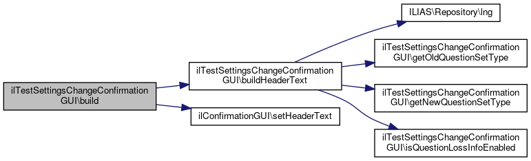 Here is the call graph for this function:| ilTestSettingsChangeConfirmationGUI::build | ( | ) |