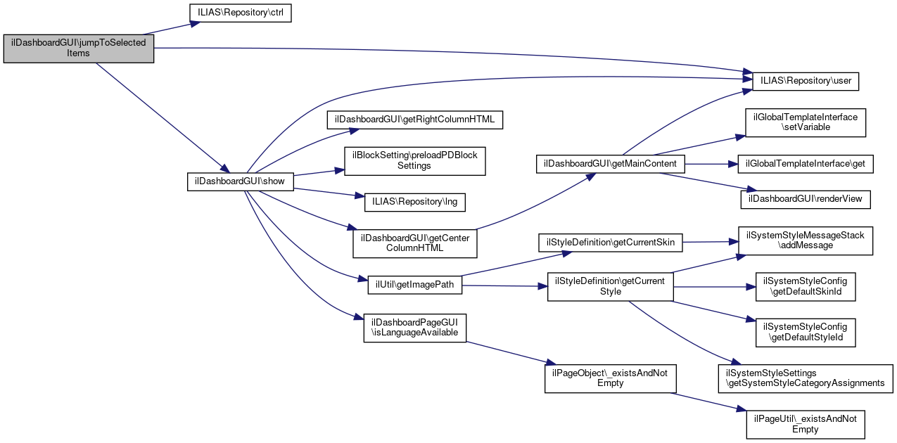 Here is the call graph for this function:| ilDashboardGUI::jumpToSelectedItems | ( | ) |
