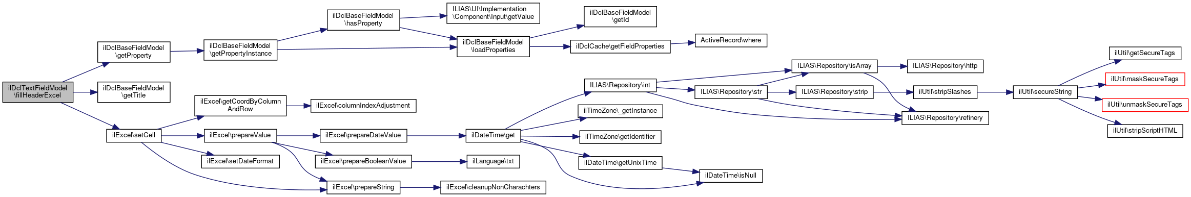 Here is the call graph for this function:| ilDclTextFieldModel::fillHeaderExcel | ( | ilExcel | $worksheet, |