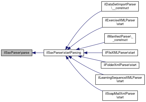 Here is the caller graph for this function:| ilSaxParser::parse | ( | $a_xml_parser, | |
