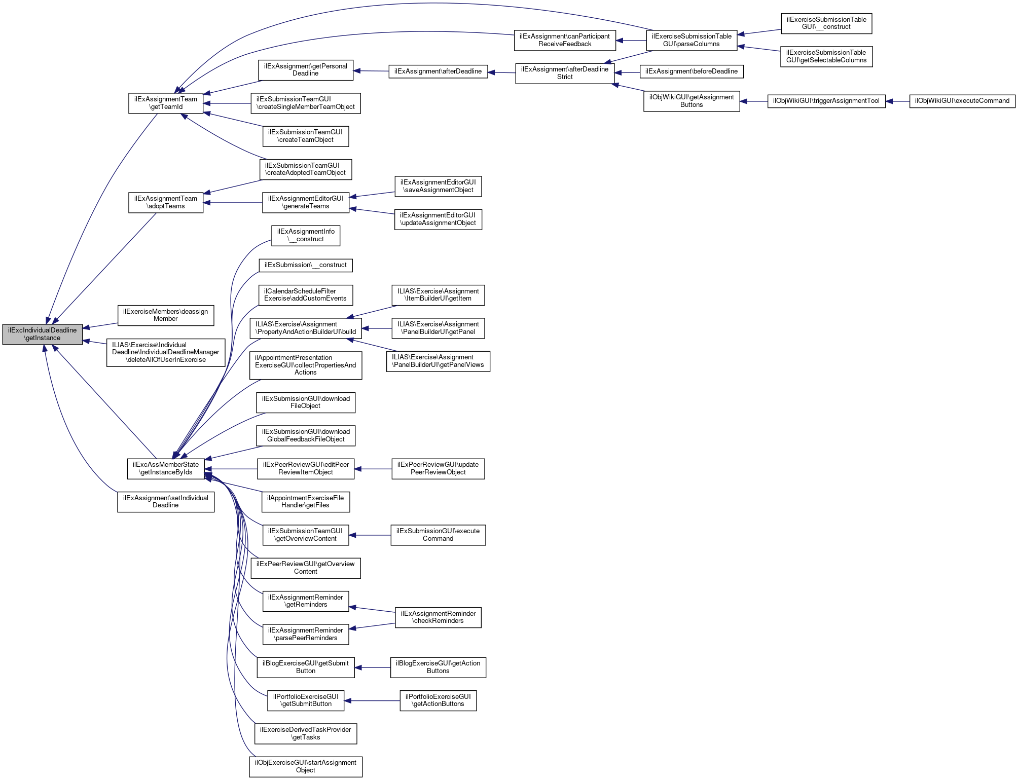 Referenced by ilExAssignmentTeam\adoptTeams(), ilExerciseMembers\deassignMember(), ILIAS\Exercise\IndividualDeadline\IndividualDeadlineManager\deleteAllOfUserInExercise(), ilExcAssMemberState\getInstanceByIds(), ilExAssignmentTeam\getTeamId(), and ilExAssignment\setIndividualDeadline().