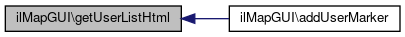 Here is the call graph for this function:| ilMapGUI::addUserMarker | ( | int | $user_id | ) |