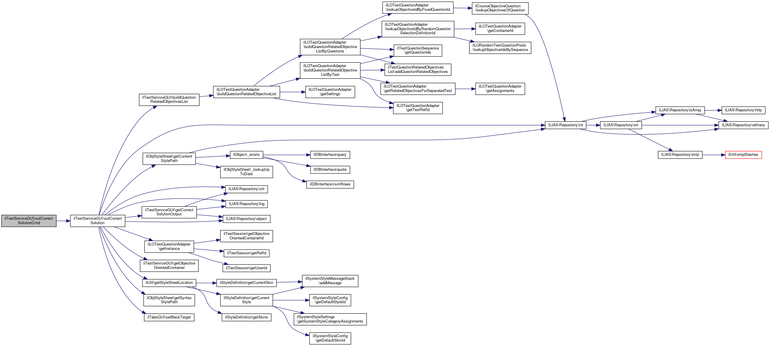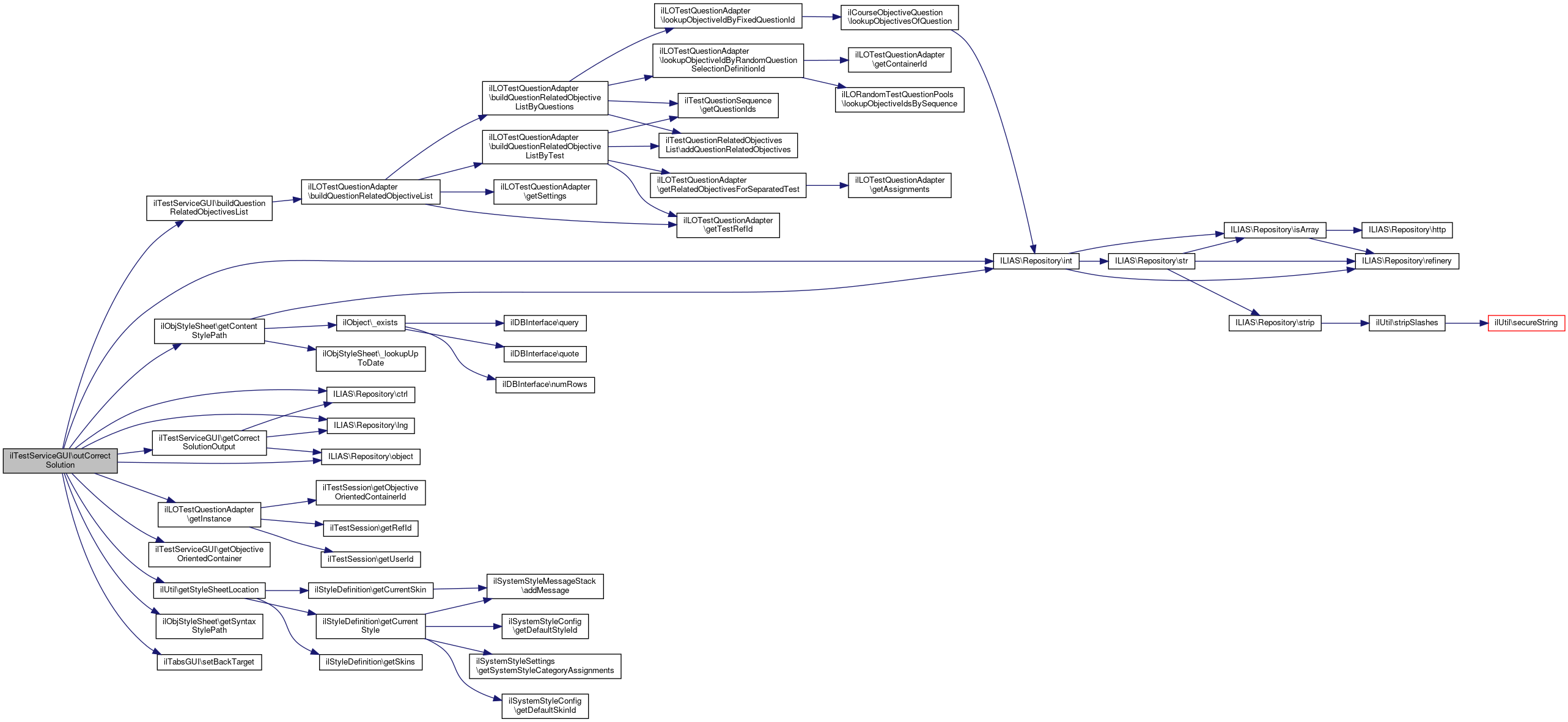 Here is the caller graph for this function:| ilTestServiceGUI::getCorrectSolutionOutput | ( | $question_id, | |