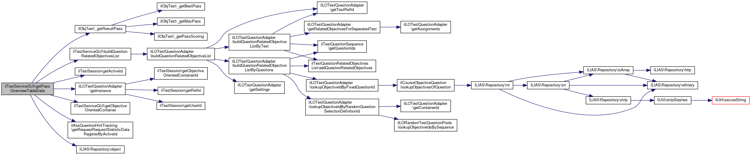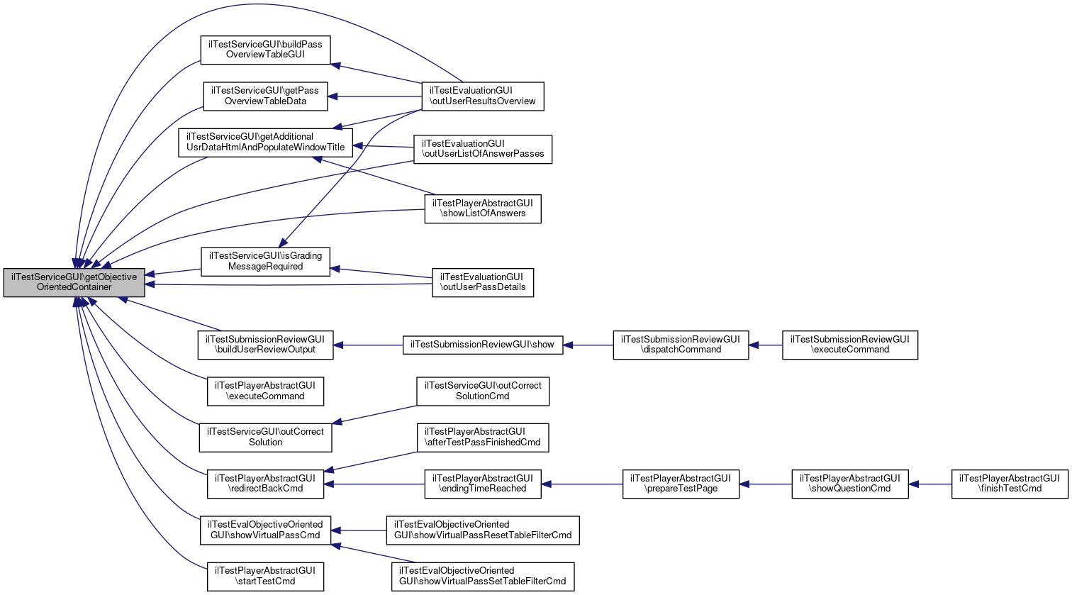 Referenced by buildPassOverviewTableGUI(), ilTestSubmissionReviewGUI\buildUserReviewOutput(), ilTestPlayerAbstractGUI\executeCommand(), getAdditionalUsrDataHtmlAndPopulateWindowTitle(), getPassOverviewTableData(), isGradingMessageRequired(), outCorrectSolution(), ilTestEvaluationGUI\outUserListOfAnswerPasses(), ilTestEvaluationGUI\outUserPassDetails(), ilTestEvaluationGUI\outUserResultsOverview(), ilTestPlayerAbstractGUI\redirectBackCmd(), ilTestPlayerAbstractGUI\showListOfAnswers(), ilTestEvalObjectiveOrientedGUI\showVirtualPassCmd(), and ilTestPlayerAbstractGUI\startTestCmd().