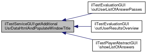 Here is the call graph for this function:| ilTestServiceGUI::getAdditionalUsrDataHtmlAndPopulateWindowTitle | ( | $testSession, | |