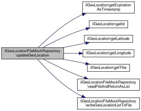 Here is the call graph for this function:| ilGeoLocationFileMockRepository::updateGeoLocationTimestampByCoordinates | ( | float | $a_searched_latitude, |