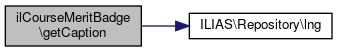 Here is the call graph for this function:| ilCourseMeritBadge::getCaption | ( | ) |